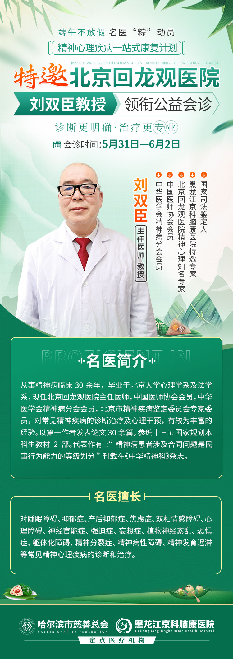 “家門口”看三甲名醫(yī)劉雙臣從事精神醫(yī)學(xué)和心理教育臨床工作40余年,具有豐富的臨床經(jīng)驗,對心身障礙診斷治療、青少年情緒行為障礙問題方面有深入研究